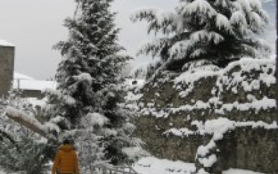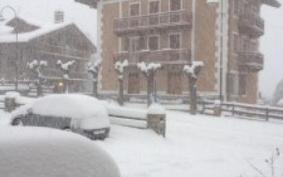Looking Out Our Front Door in Courmayeur Today we woke to heavy snow. It was fabulous except we had to get ourselves to the bus station...