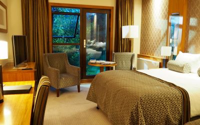Best room in the hotel. Lift. Fifth floor. Double balcony looking straight over Chapel Bridge and the Water Tower. No toiletries...